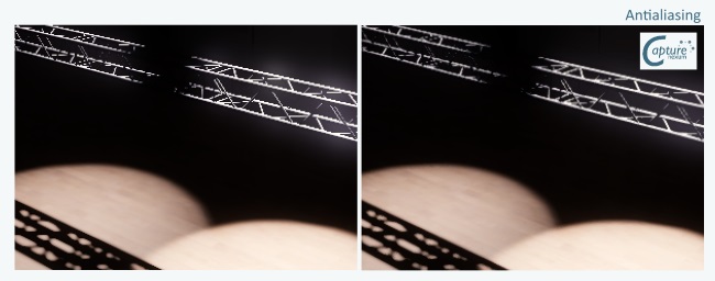 The new live view antialiasing rendering setting also helps the live visualization not only by smoothing off all sharp edges but also by keeping specular reflections of small shiny surfaces (such as truss bracing) in check, minimizing flickering effects during camera movements.