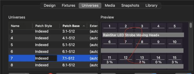 When it decides to show up in the universe windows it doesnt show DMX Collision when there are more lights at the same address, it only shows one fixture
